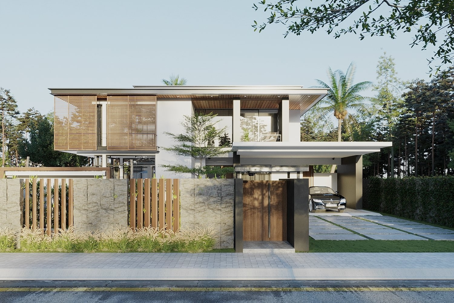 Cổng gỗ hiện đại mang đến vẻ đẹp gần gũi và tự nhiên, kết hợp với sự đơn giản nhưng tinh tế, là lựa chọn lý tưởng cho các biệt thự có phong cách cổ điển hoặc hiện đại.